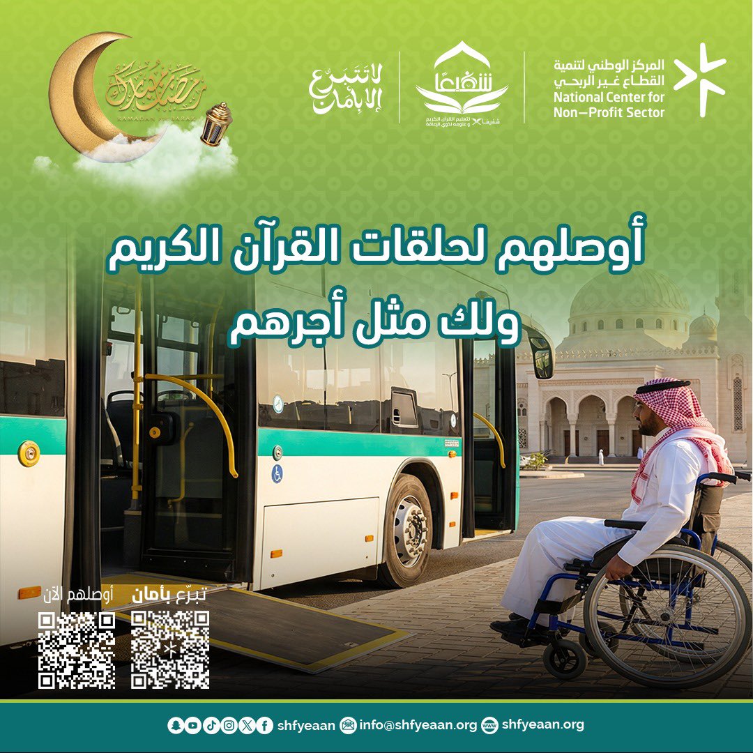 اجعل لك سهمًا في الأجر، وكن سببًا في تمكين طلابنا #ذوي_الإعاقة للوصول إلى حلقات #القرآن_الكريم بكل يسر وأمان.